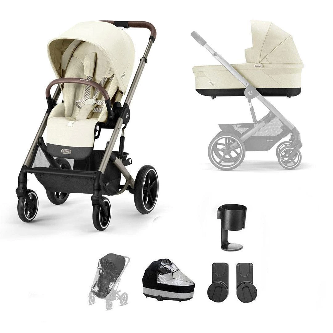 The CYBEX Balios S Lux Essential Bundle in Seashell Beige will have you covered from day one. With everything you need from birth to approx. 4 years old you’ll enjoy complete peace of mind. The Balios S Lux pushchair bundles include the Balios S Lux Pushchair, Cot S Lux Carrycot, Cybex Gold Footmuff among other accessories. Cybex prides itself in safety, without compromising on design and functionality – whichever bundle you choose you can enjoy the benefits of Cybex quality products whichever way you choose to travel.