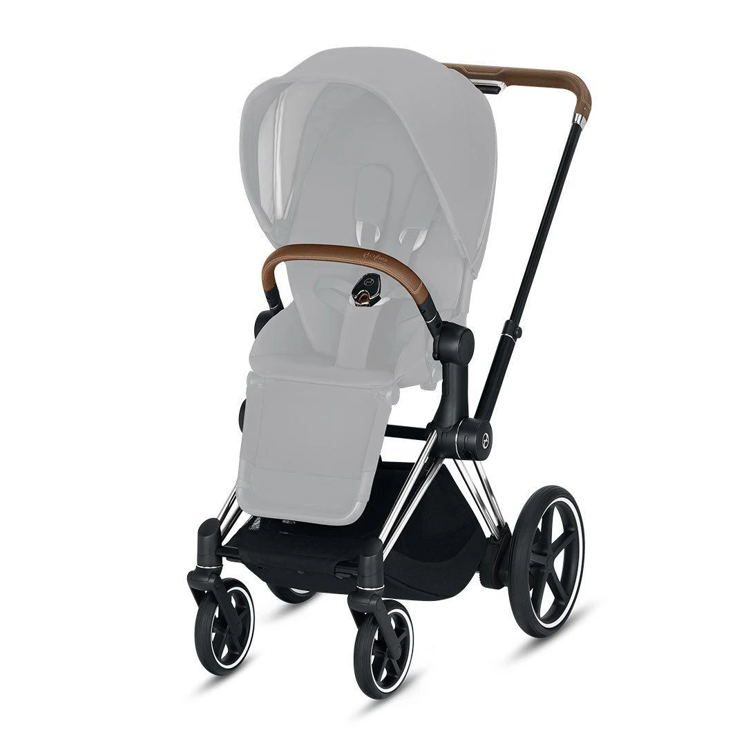 Frame with Seat Hardpart in Chrome + Brown is the first of it’s kind – an electric pushchair frame. This pushchair frame helps struggling parents get up and down hills or small inclines thanks to the electric engines.