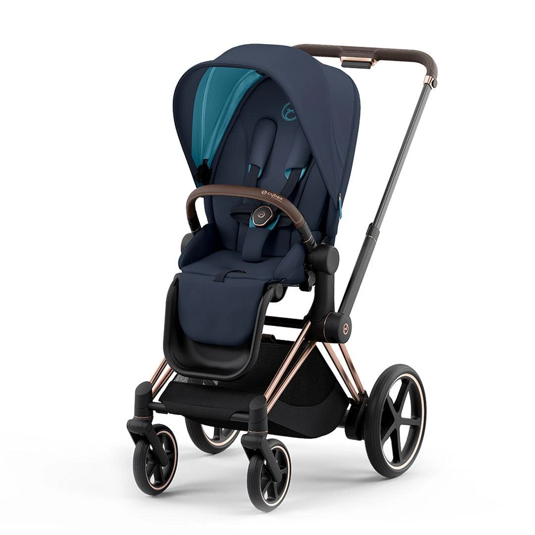 The CYBEX e-Priam Pushchair in Nautical Blue (2022) boasts an all-new free-of-charge CYBEX app, you can activate the rocking function, control the level of support from the electric motors and check your battery and firmware. The updated design and innovative new functionality make the e-Priam even more desirable.