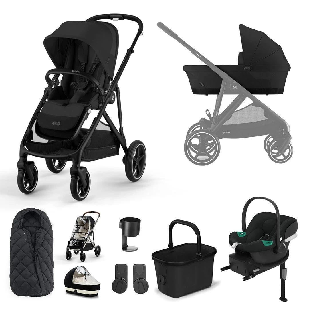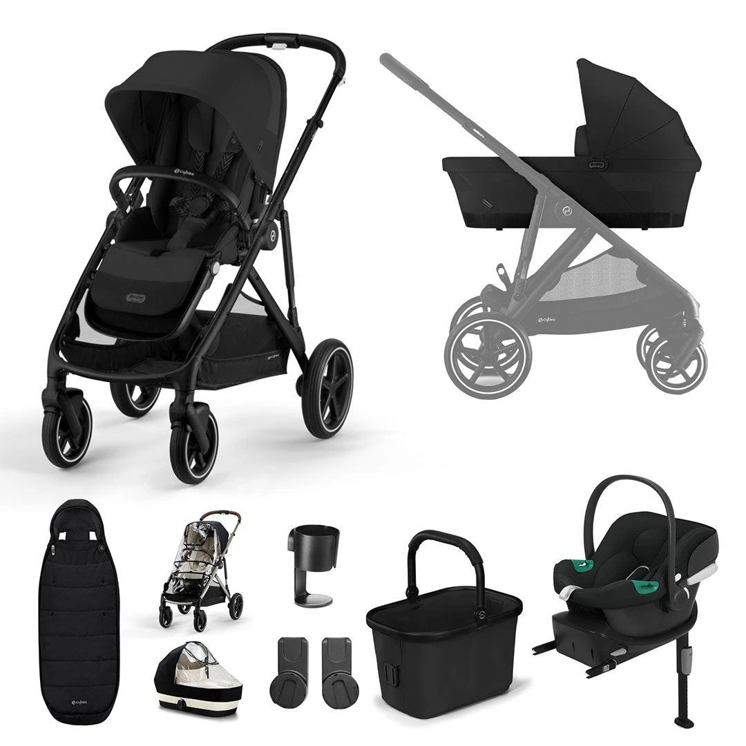 The CYBEX Gazelle S Comfort Bundle in Moon Black will let you; mix and match between Gazelle cots, infant car seats or stroller seats to find the configuration that fits, from birth to 4 years old. Because every family is different. This bundle includes the popular CYBEX Aton B2 i-Size + Base One alongside your Gazelle S stroller and accessories, providing all you need when travelling with your little one.