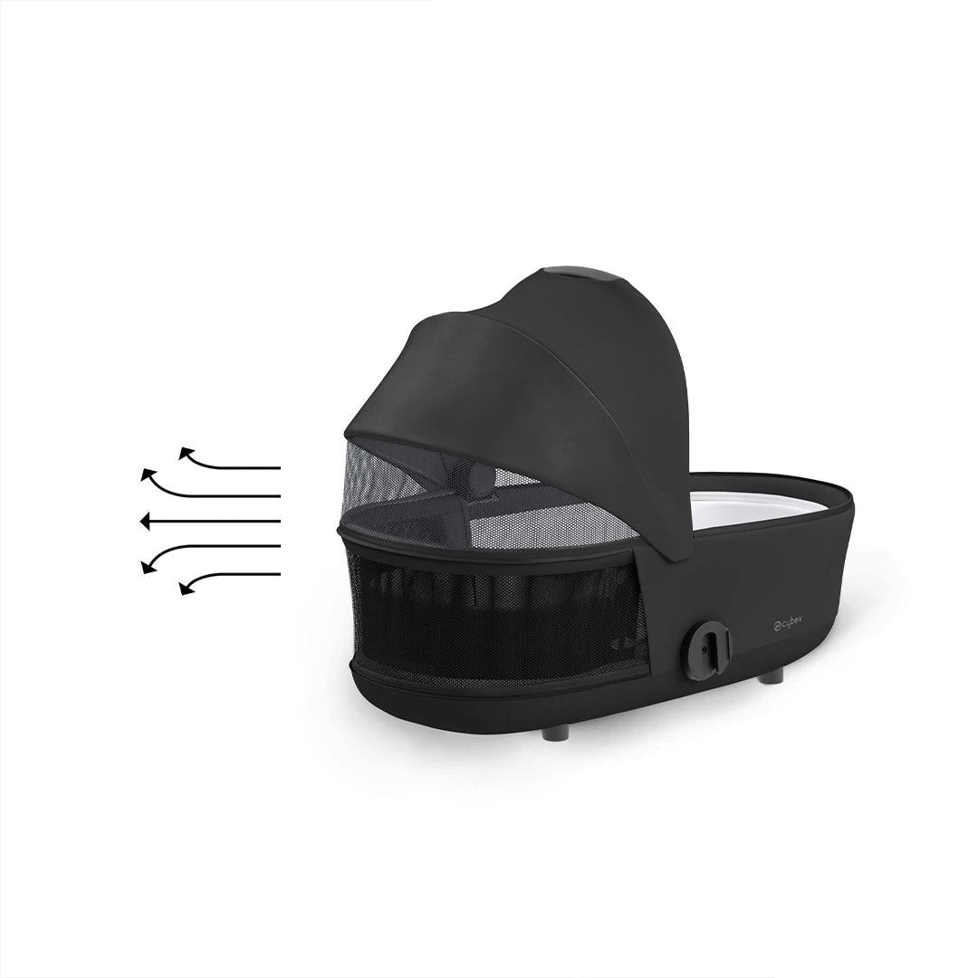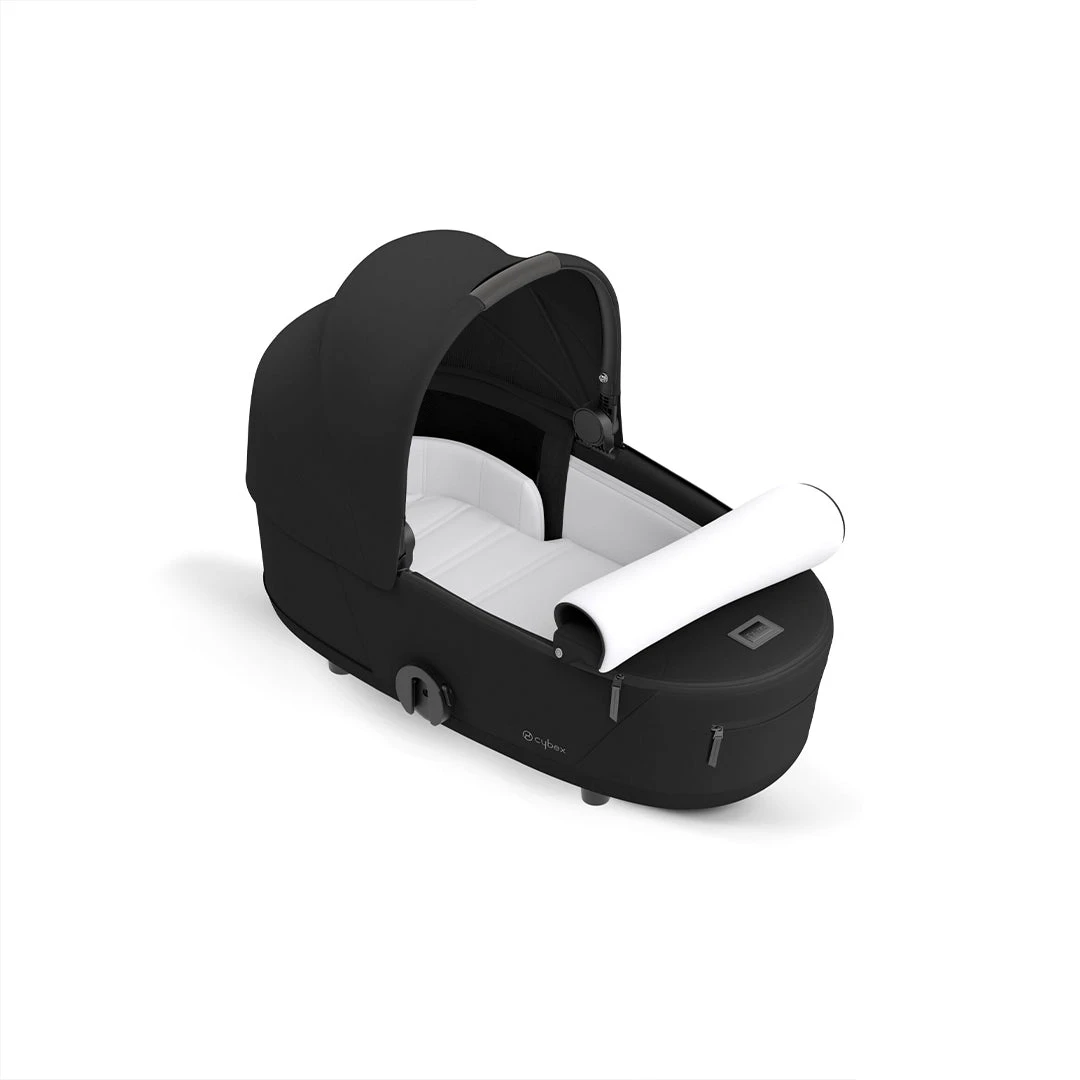 The CYBEX Mios Lux Carrycot in Sepia Black is ideal for babies from birth until theyโre six months old. Simply click onto the 2022 CYBEX Mios chassis (sold separately) – perfect for sophisticated and comfortable family travelling. The spacious unit boasts generous dimensions and maximum comfort for baby.