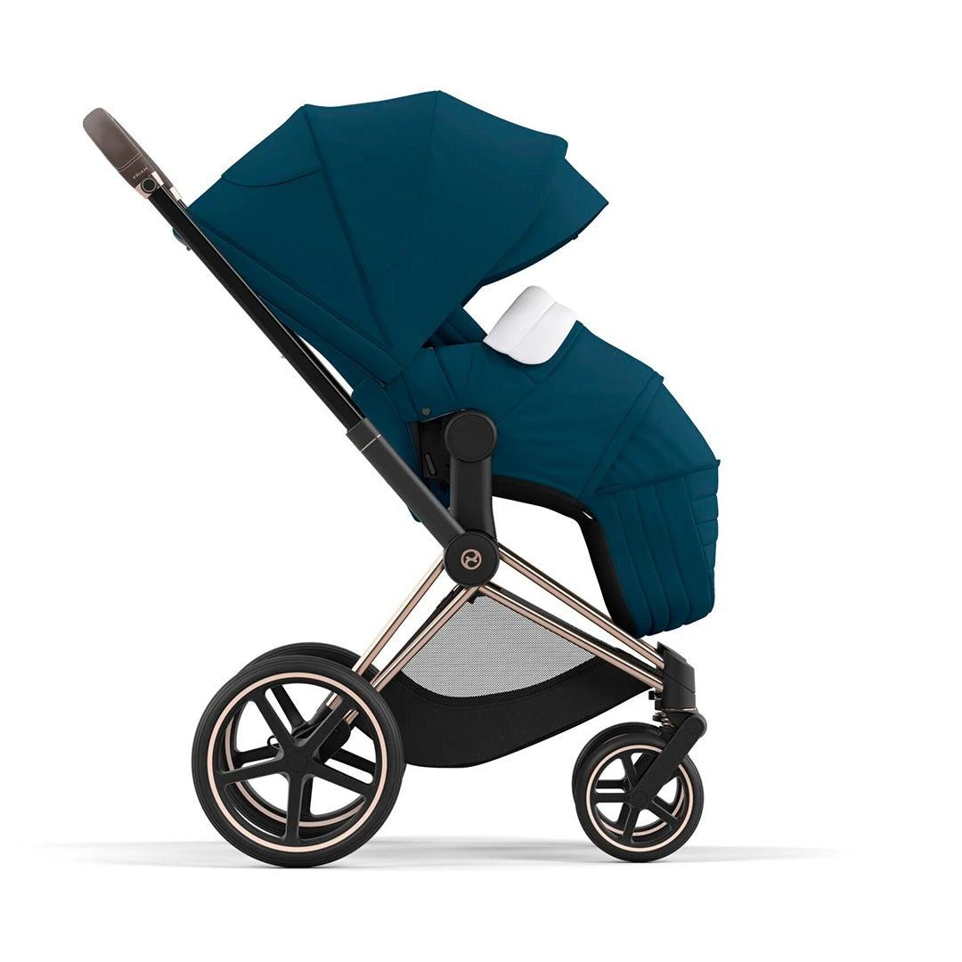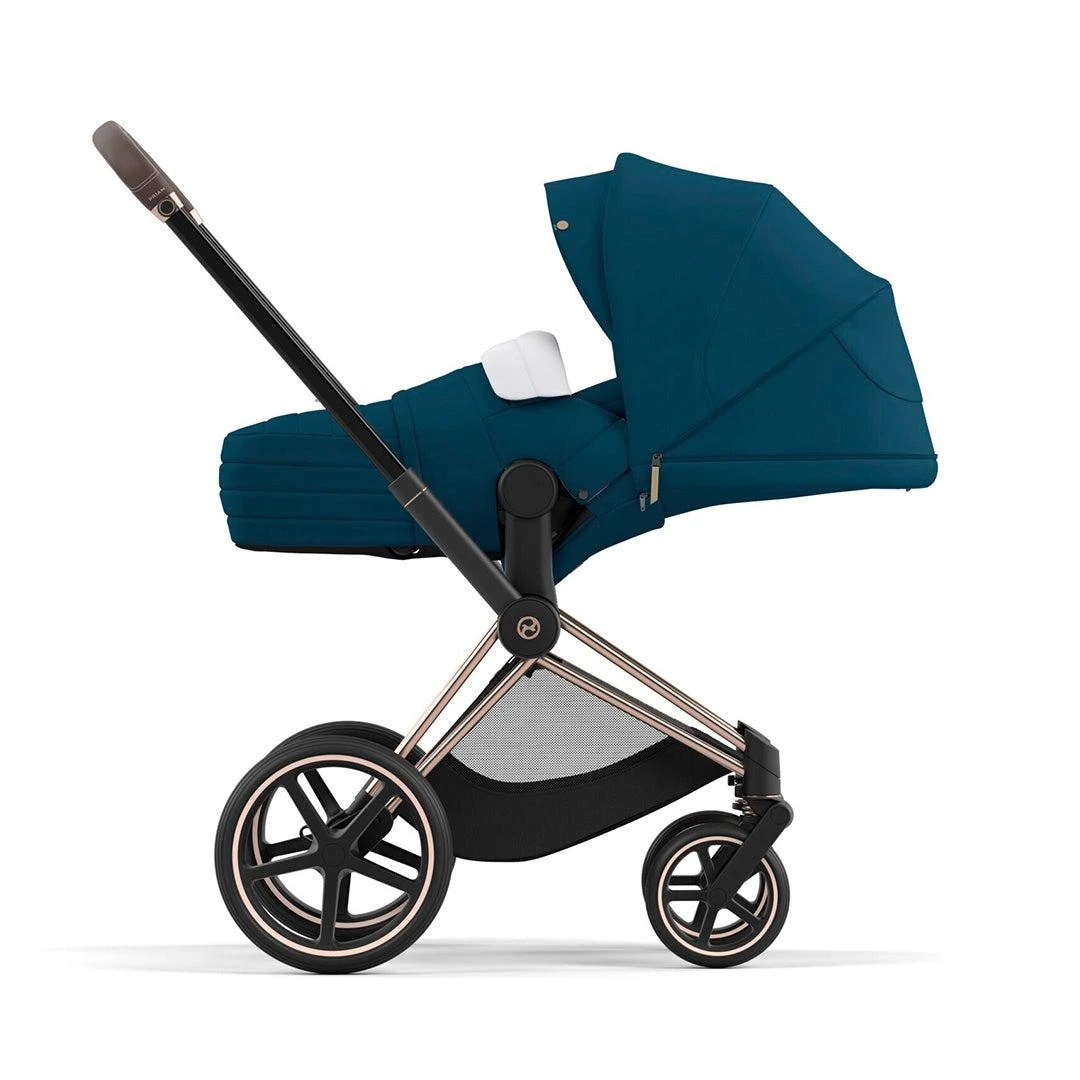 The CYBEX Platinum Lite Cot in Mountain Blue is a lightweight, flexible attachment for the New Generation Priam, e-Priam, and Mios strollers that can be used from birth. A great solution to protect your little ones from the elements without having to detach any part of your stroller.