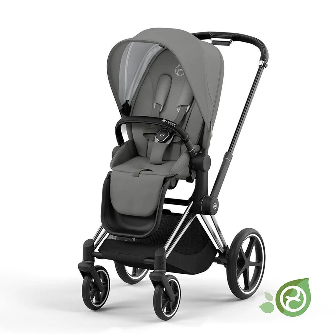 The CYBEX Priam Conscious Collection Pushchair in Pearl Grey (2022) boasts an updated design with innovative new functionality that makes the Priam even more desirable. The Priam has revolutionized the industry by combining timeless design elements with new features that make life for parents even easier and match their highest expectations.